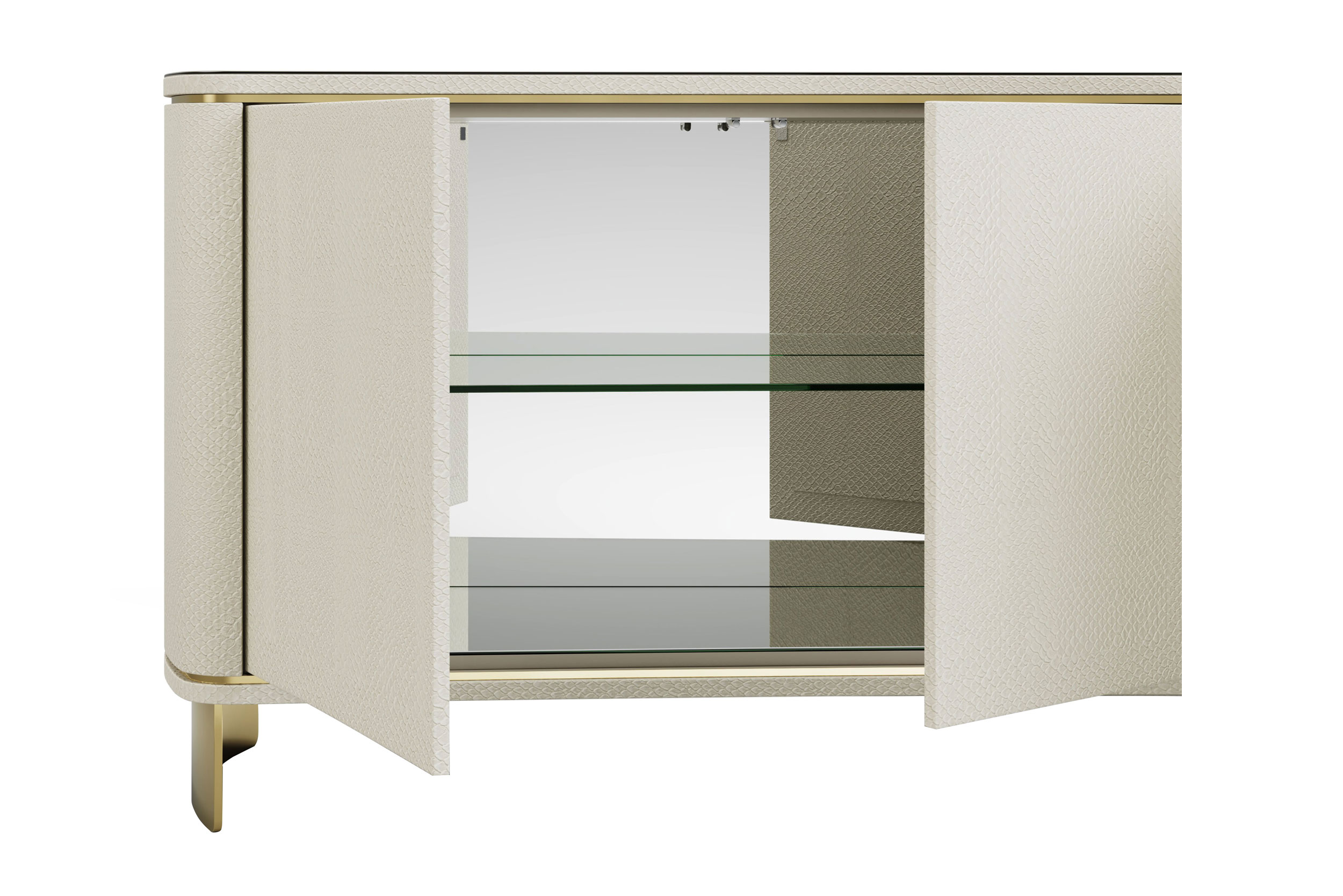 Descrição: Uma peça elegante para deixar a sua casa mais especial. Confeccionado em mdf, ele é todo revestido em couro natural. O tampo pode ser espelho ou vidro colorido. Permite iluminação.