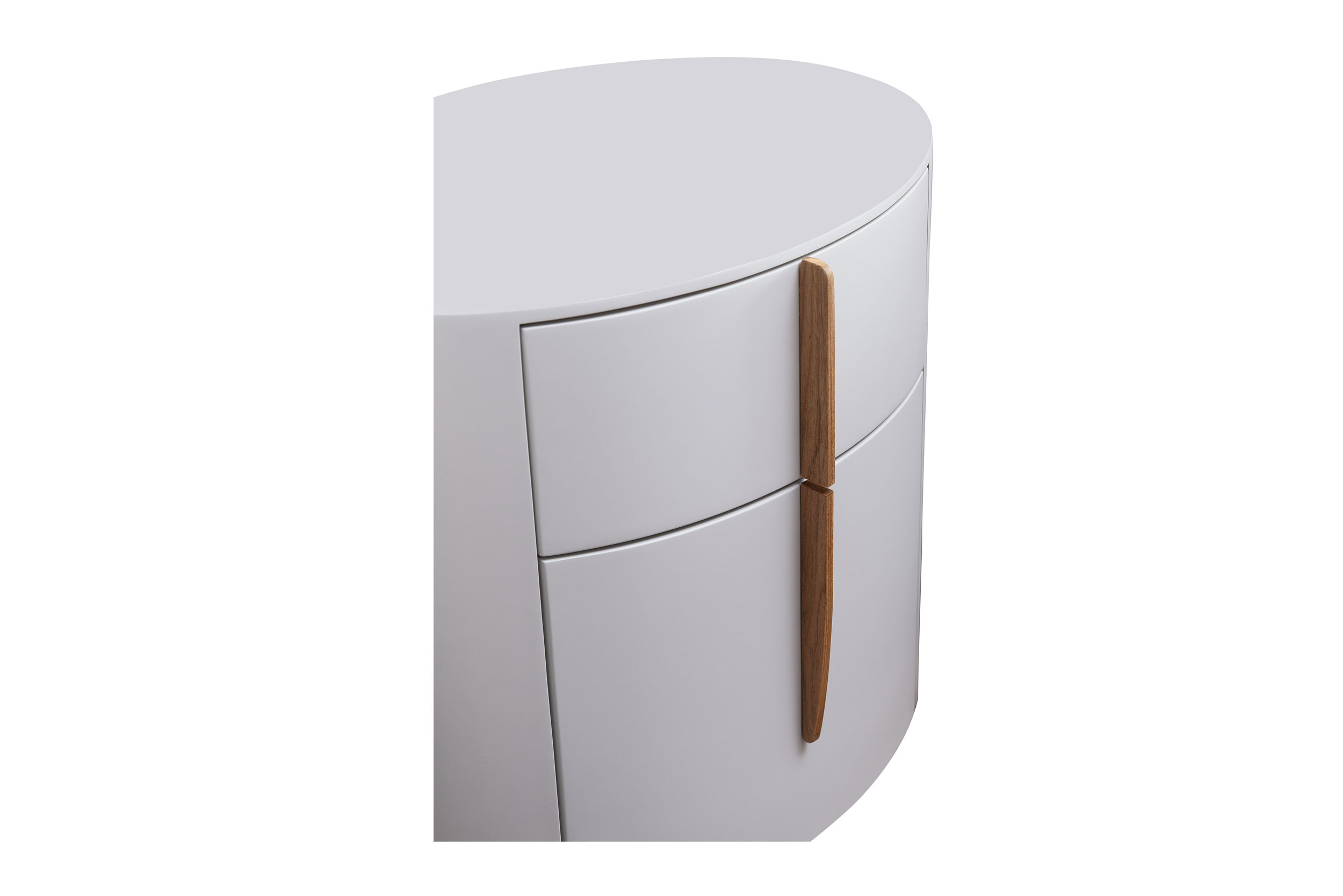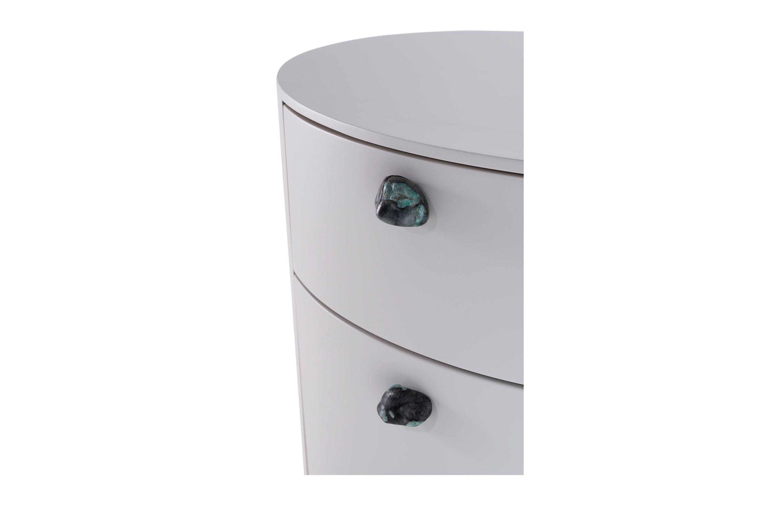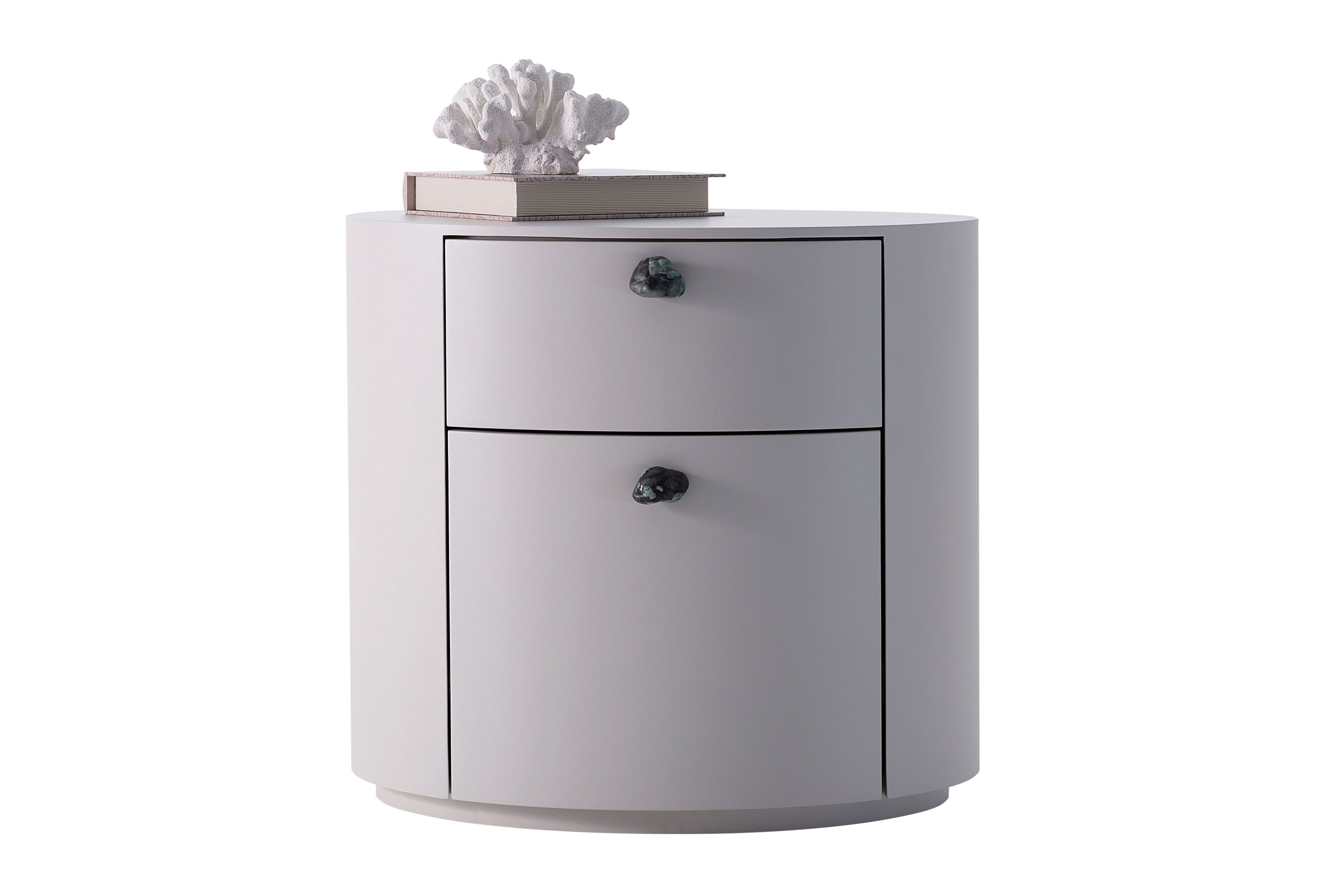 Mobiliário produzido em laca. Puxadores nas opções pedra ou madeira.
