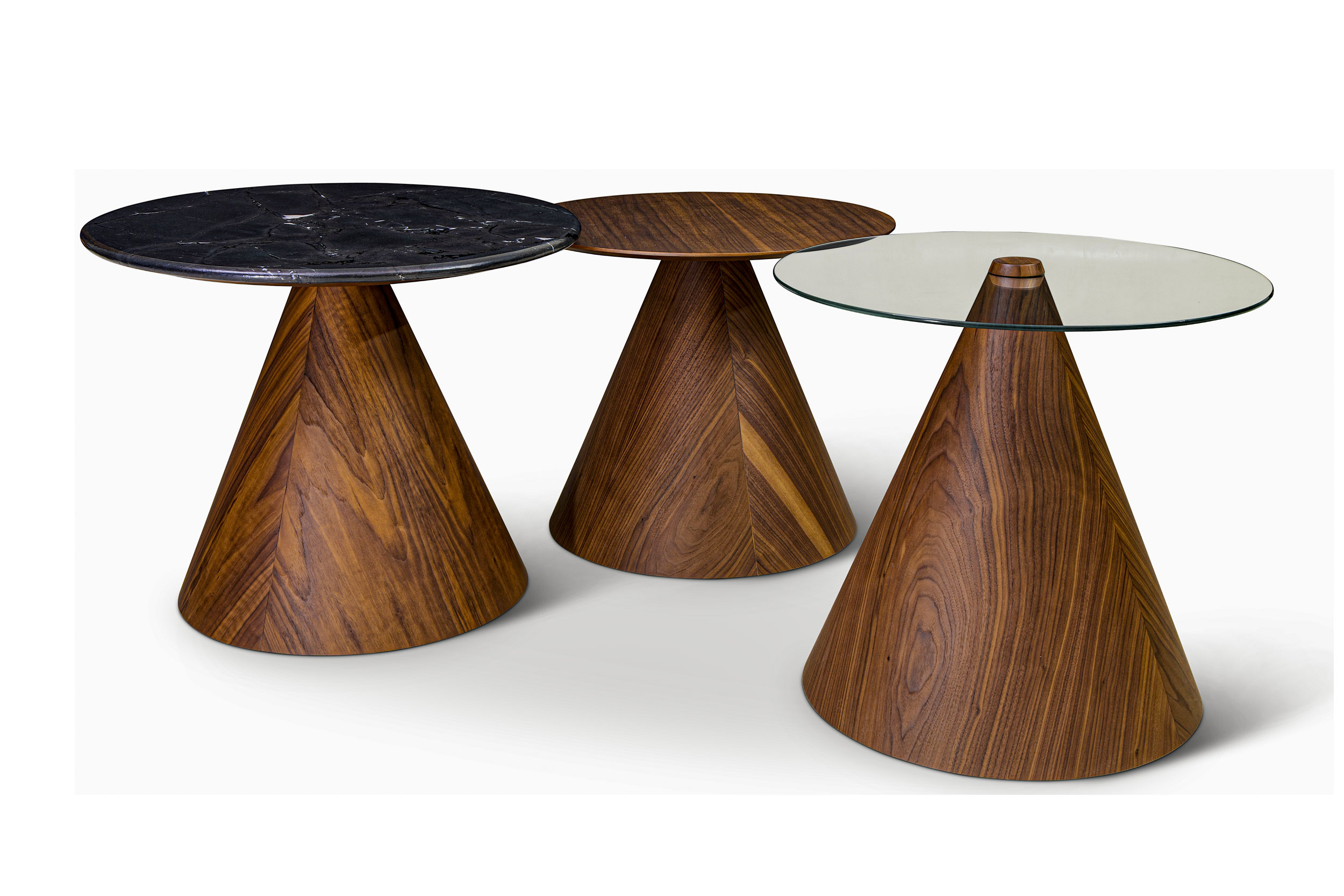 A ausência de pés tradicionais ou ornamentos foca a atenção inteiramente na textura da madeira e na silhueta geométrica.