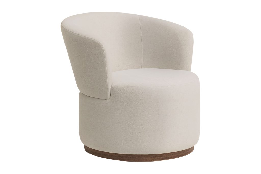 Mobiliário com assento e encosto fixos. Base giratória.