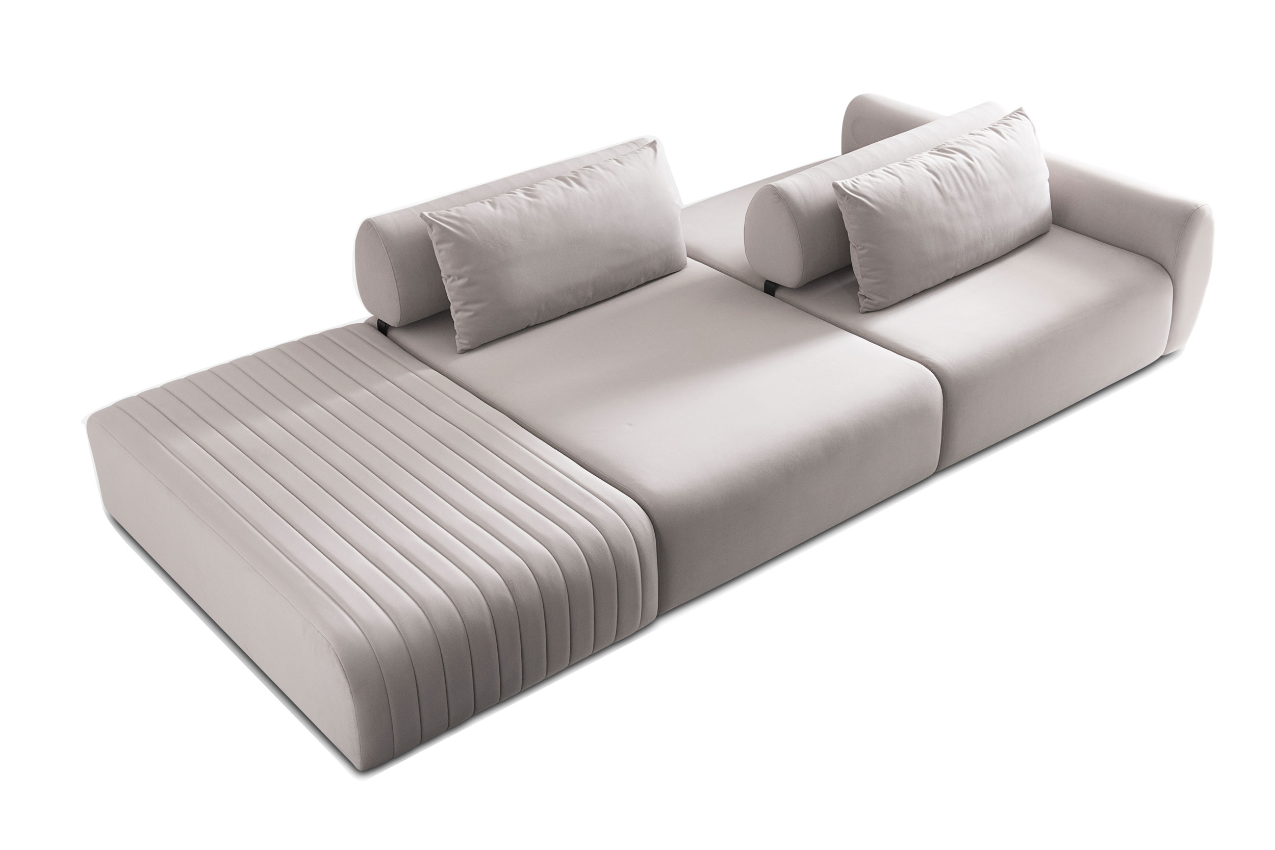 Descrição: Sofá de ilha, ideal para integrar ambientes. Movimentação do encosto de ponta a ponta do assento, que permite personalizar o espaço/conforto do sentar. Pode ser motorizado, com acionamento touch, ou manual. Pés invisíveis.